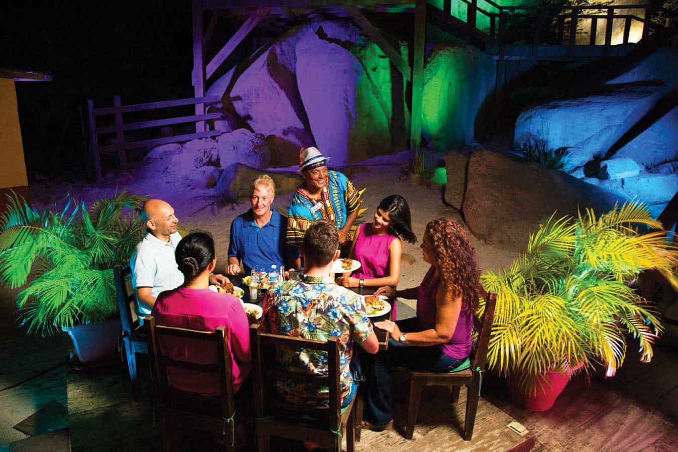 Aruba is defined by its many cultures, a blend of English, Dutch, Spanish and native Papiamento. All are represented in its cuisine, which is often served up family-style. A favorite team building activity is a group cooking class, where attendees can learn to make a local dish, such as funchi, a cornmeal mash that is similar to polenta. They can also take a culinary tour from Kukoo Kanuka, the go-to operator for pub crawls and barhopping tours. The new “Wine on Down the Road” tour starts with a sunset champagne toast on the beach, then a visit to four restaurants led by a sommelier who pairs wines and local dishes.