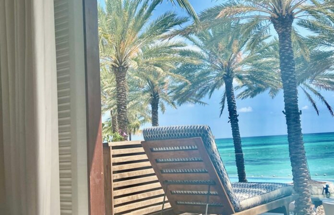 The Nassau property sits next to an enormous water park and a separate Beach Club, a peaceful area shaded with palms and steps from the ocean, which the IRF was allowed to take over for its final evening event. There are numerous other indoor and outdoor spaces, most at the adjacent Grand Hyatt’s 200,000-square-foot convention center. Our group took advantage of the entire resort, with meetings at the Grand Hyatt, a poolside evening at the Rosewood (the third property in the Baha Mar trio) and late-night partying at the Skybar atop the SLS on the 20th floor.