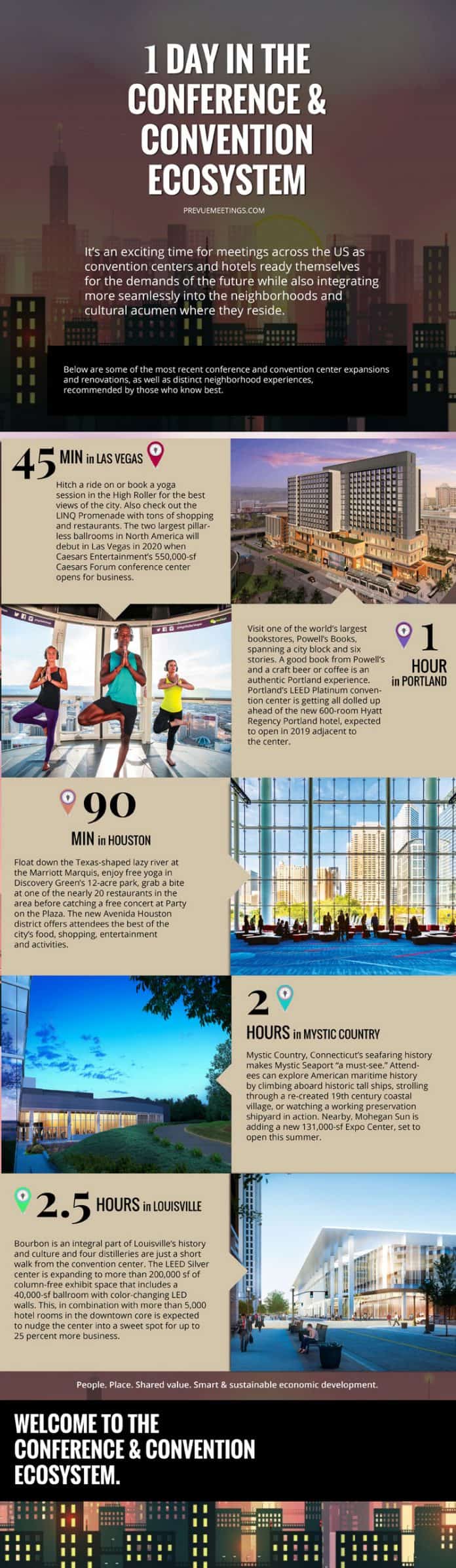 TrendsHyperlocalDestinationsNorth AmericaExperiencesAttractionHot Topics 1 Day in the Conference & Convention Center Ecosystem (An Infographic) By Johnalee Johnston - January 4, 2018 0 354 FacebookTwitterPinterestWhatsApp See also Caesars Palace Enters a New Era of Opulence