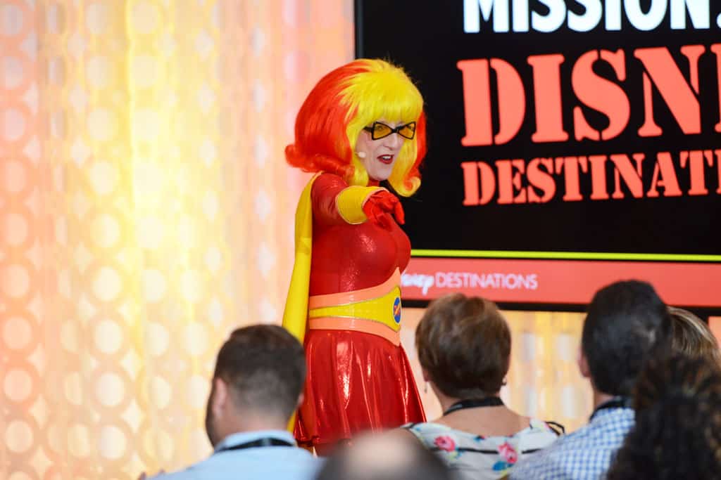 The Disney Events Group delivers a client’s message with an impact by getting key points across to attendees in a way that they’ll remember. According to Kevin Malquis, creative director, “Studies show that people learn information better and retain it longer when that information is presented in an entertaining way.” Creative costuming creates engaging characters to help get the information across. These Streetmosphere characters are created specifically for the organization, industry or event theme and sometimes even become mascots of the conference, according to Malquis. They can interrupt the meeting to energize it with a little fun, host an award celebration or meeting, or be a surprise guest at an event. During the Awaken Summer meetings presentation, Anita Super Hero lead our meeting while providing the information (and plenty of jokes) in a fun, lighthearted, yet professional manner—dressed in spandex with a cape and all.