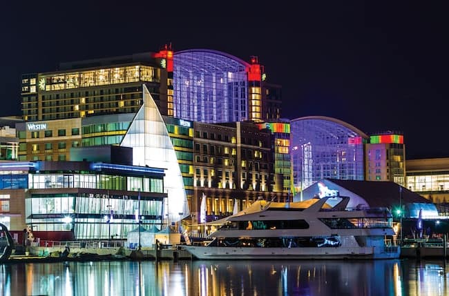 Not only is this meetings destination conveniently located between Washington, D.C., and Alexandria, Va., but it also takes advantage of the area’s underused waterfront with the National Harbor Marina, which includes two, 700-foot-long piers with 64 slips. Two 10,000 sf platforms at the marina provide an ideal location for corporate entertaining or private events.