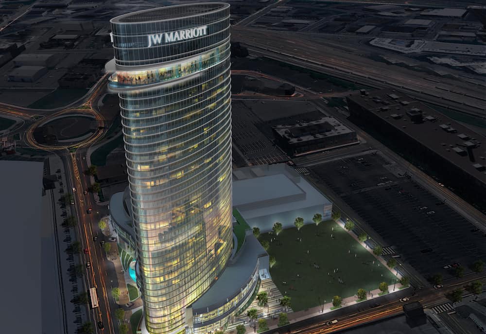 Scheduled to open next summer, the 533-room property celebrated its topping-out milestone earlier this month, as construction reached its final height. Perhaps most significant—at least from the exterior—is the hotel’s elliptical shape and all-glass facade, designed to capture the creative spirit of the city, while also conveying a sense of luxury known representative of the JW Marriott brand.