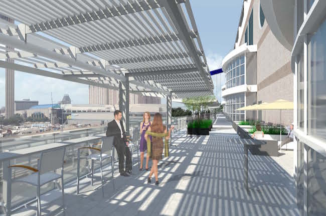 The multipurpose event venue connects to the convention center and can accommodate anything from football and basketball games to tradeshows and stadium concerts. Designed by Kansas City, Mo.-based Populous, the retrofit will bring the venue in line with current stadium trends. New, winding concession counters, a beer garden and outdoor terraces with bar counters will all create a more welcoming environment for event goers.