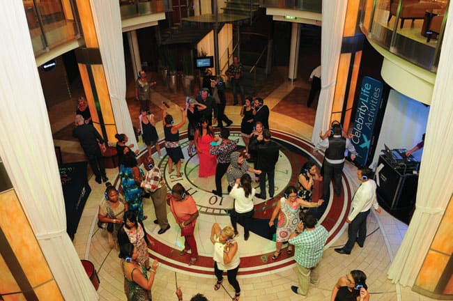 Leveraging onboard technology in creative ways is high on the agenda when meeting at sea. Enter Celebrity’s silent discos, where groups don wireless headphones—as opposed to the usual earth-shattering speaker sound systems—and dance the night away. “Music is broadcast via radio transmitter,” Vogt says. “It’s a fun activity that our incentive groups love.” Celebrity’s meeting space is flexible and multi-functional, so it’s also easy to hold a disco in one room while simultaneously holding a meeting or dinner in another, complete with Celebrity’s Michelin-starred catering.