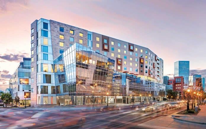 It’s not local slang or secret code, or even the name of one of Denver’s many craft breweries. It’s a giant public art sculpture of a 40-ft indigo grizzly, cheekily peeking into the upper windows of the Colorado Convention Center (CCC), a stylish glass structure within walking distance to 10,000 hotel rooms that is also planning a $233 million expansion. A recent destination experience introduced us to even more artful surprises across two Denver resorts.