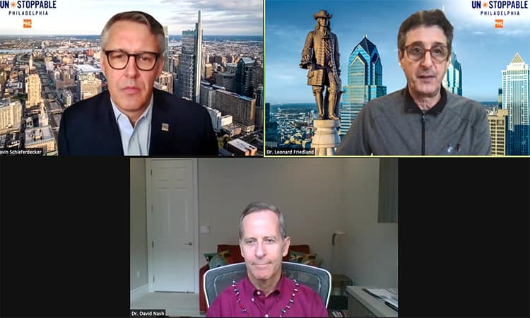 A customer Zoom call with The Philadelphia Convention and Visitors Bureau’s Chief Health Advisor, Dr. David Nash, and PHL Life Sciences Advisory Board Member, Dr. Leonard Friedland, shared the latest news about the COVID vaccine and its impact on 2021 meetings.
