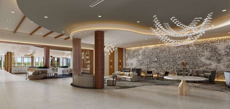 Inspired by the landscape of trees and tranquil ponds, the hotel’s design by DLR Group uses warm textures, glass, and clean modern lines to reflect the area’s natural beauty while delivering a refined, peaceful guest experience.