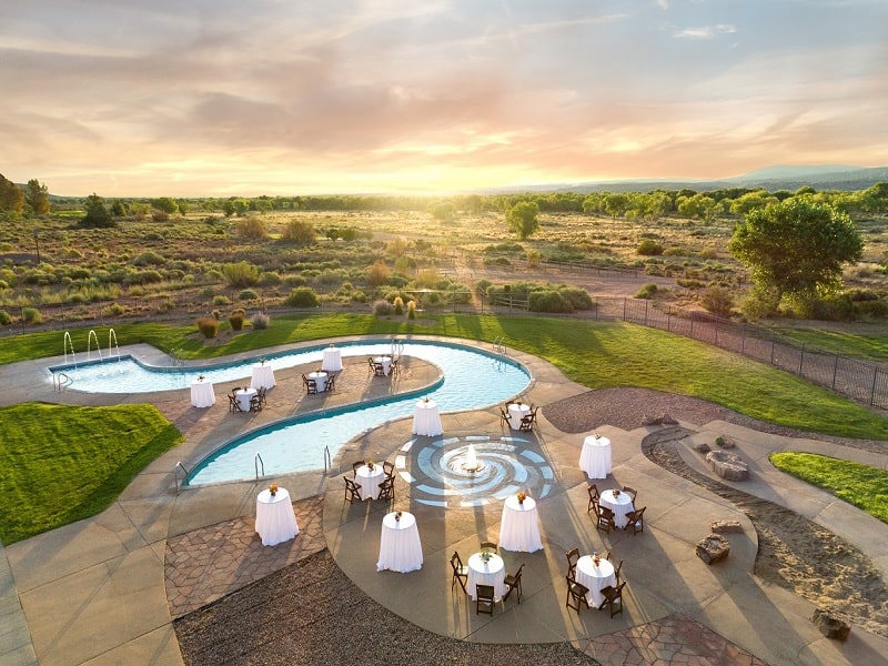 The Hyatt Regency Tamaya Resort & Spa’s Cottonwoods Pavilion is situated just minutes away from the main resort and is nestled among the Rio Grande’s Cottonwood Forest, creating a private setting surrounded by the splendor of nature. The venue easily transforms from an indoor to outdoor space with floor-to-ceiling windows that open on to the Cottonwoods Patio.