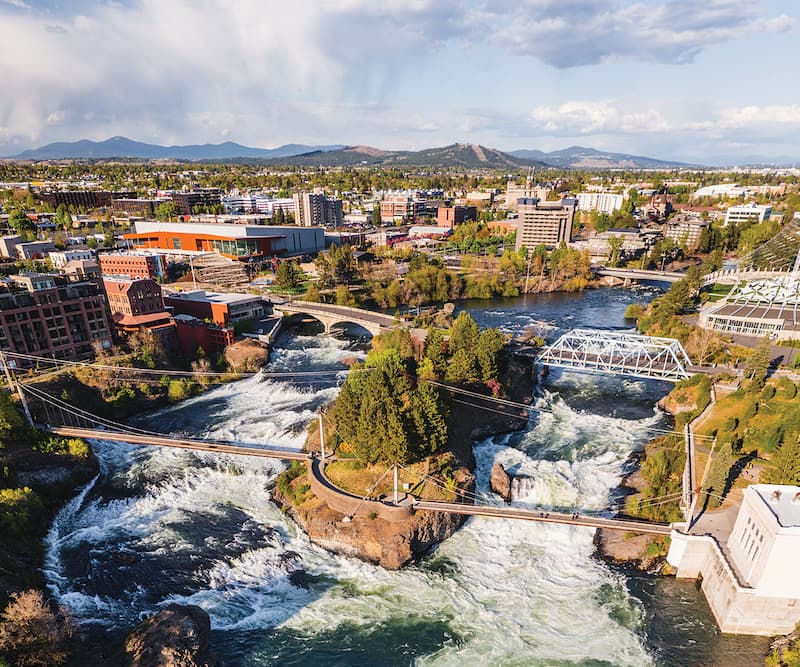 As the unofficial “meeting district,” downtown is home to most of Spokane’s venues, and they all feature plenty of coffee shops, lunch spots, breweries or cocktail bars nearby. This area also showcases Spokane’s stunning and eclectic architecture, a shopping center and great views of Spokane Falls, including the Numerica SkyRide, which lets you ride in a gondola over the rapids.