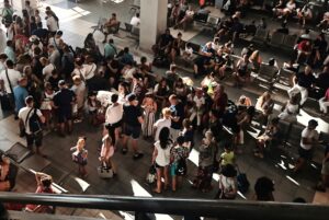 “Absolute madness” has been reported at Philadelphia International Airport as lines-to-nowhere filled with anxious travelers crowd the concourses.