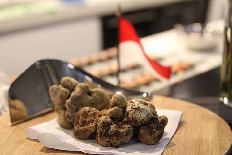 That is why Sabatino Truffles in New York City was the ideal event venue for the Monaco Government Tourist Office to celebrate Monaco’s National Day. A truffle and champagne reception was attended by some of the top travel advisors and meeting planners based in New York City. Sabatino Truffles lies below a towering truffle tree set on East 54th Street. As you reach the bottom of the stairs, you are immersed in the intoxicating smell of fresh truffles. Once inside, you are surrounded by everything truffle. Taking center stage is a glass-enclosed plate of truffles. Today, truffles are among the most expensive natural foods in the world.