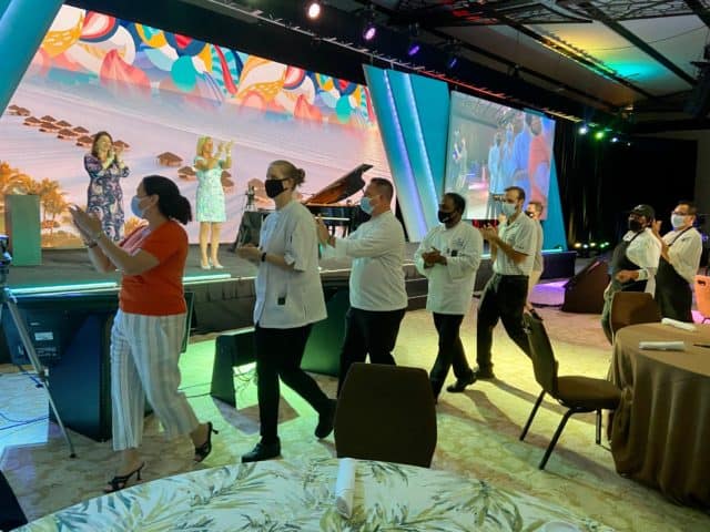 By far the most emotional moment of the event was when JW Marriott Marco Island GM Sharon Lockwood, almost in tears, thanked her associates for all they had done this past year and dozens upon dozens of them streamed into the ballroom. The cheers and applause were deafening—and the shared feeling of “We’re back!” resonated among the attendees and the hotel staff.