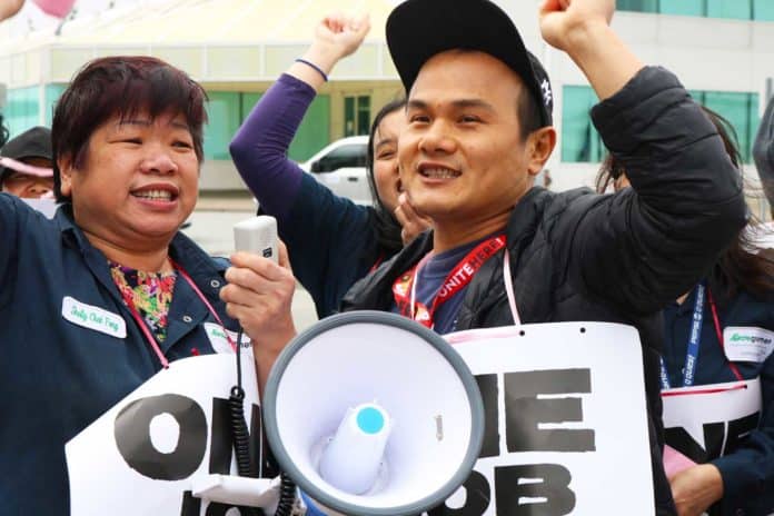Lorraine Powell, Food Service Director for UNITE HERE Local 2, said, “Airline catering workers are tired of watching United, Delta, and American Airlines make huge profits while they struggle to pay for unaffordable health care with poverty wages,” said. “We’re saying one job should be enough, and airline catering workers are ready to fight for it.”