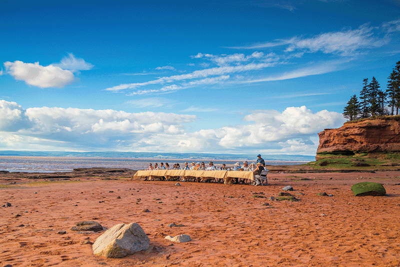 Impress your team with a dining destination that they have never been to before: the ocean floor. At Burntcoat Head Park, Nova Scotia, the site of the world’s highest recorded tides, groups can enjoy a delicious three-course dinner in a location that most can only dream of. Groups will meet a local forager to explore tide pools and learn about local wild edible plants, followed by a lunch of Nova Scotia seafood cooked in Tidal Bay wine. After lunch, a private tour of the sea floor will leave your team with a greater understanding of, and connection to, this ocean environment—as well as one another. A dining table is then set on the ocean floor, where your team can enjoy a three-course meal including local, pasture-raised beef and Nova Scotia lobster tail, knowing that their exclusive dining location will disappear in less than 6 hours as it becomes submerged by the incoming tide.