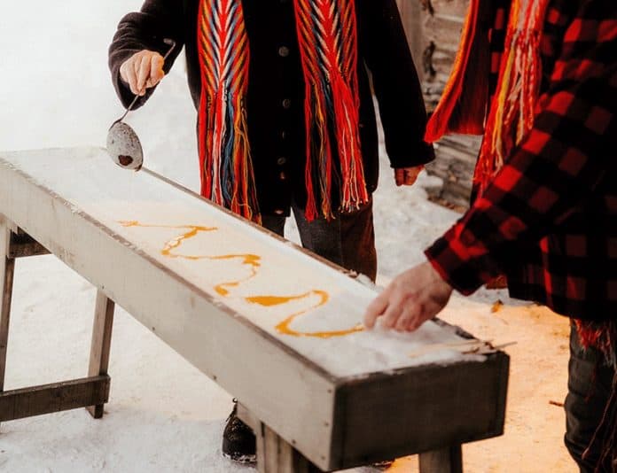 The sugar shack, or cabane au sucre, is a tradition deeply rooted in the culture of Québec and takes place during the sugaring off season in the months of February, March and April. Here groups will discover the centuries old French Canadian method of making maple syrup. First the tree is tapped with a spout, then the sap is collected in a pail and transported to a traditional wood-fired evaporator, where it is transformed into maple syrup.