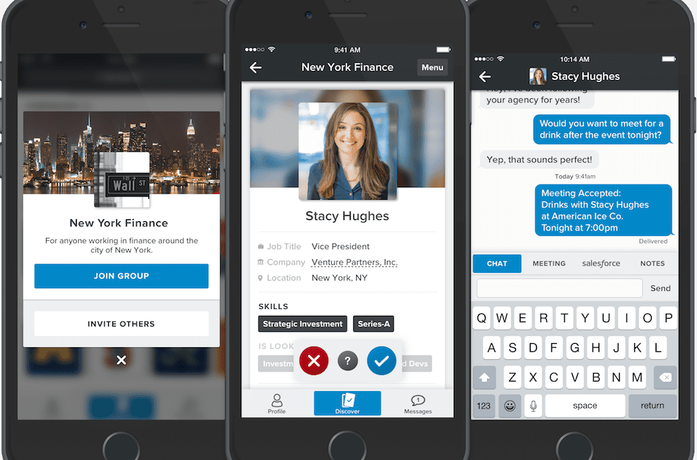Launched in early 2016, SummitSync plans to consolidate individual event apps into one universal platform for professional networking at events. Similar to Tinder, the app allows users to create more detailed profiles and, therefore, creates better matches for professionals seeking to connect with others at events. Users sync during the event so they can set up appointments or dinners with other professionals in their network. The app even keeps the event open for 72 hours after the event, and in-app messaging service remains indefinitely for users to continue connecting with those they met at the event or hope to meet at future ones.